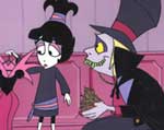 Beetlejuice is a series very loosely based on the 1988 movie of the same name. While in the movie Beetlejuice was a pervert (to put it lightly) and he and Lydia were enemies, the cartoon portrays them as best friends and Beetlejuice as more of a lovable goofball. Lydia and Beetlejuice often visit each other in their respective worlds, but Beetlejuice can only appear as something other than himself (such as a bug, lamp or reflection in a mirror) in Lydia's world until Lydia summons him with "Beetlejuice, Beetlejuice, Beetlejuice." This show relies heavily on puns and wackiness. The show ran from 1989 to 1991.